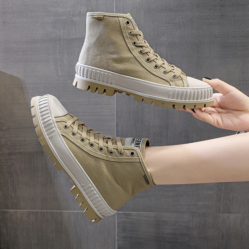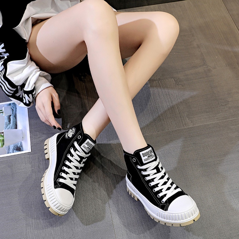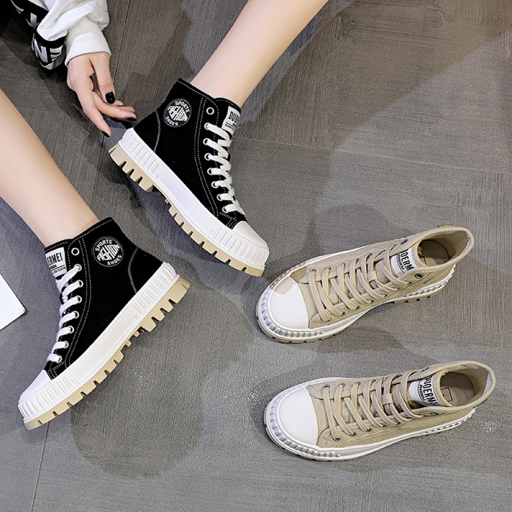 New Canvas Shoes Women's Trendy High-Top Flat Casual Boots Sports Thick-Soled Trendy Sneakers