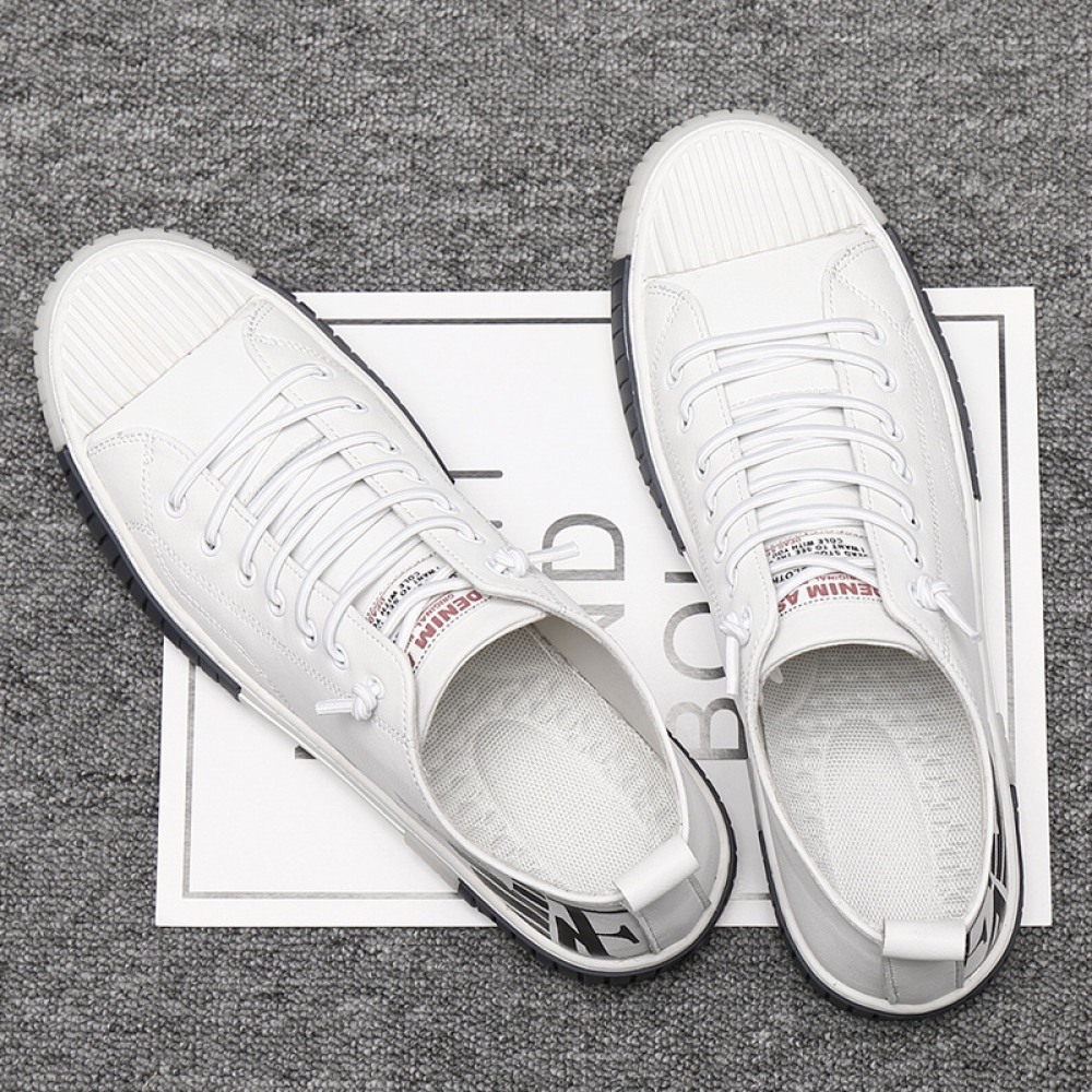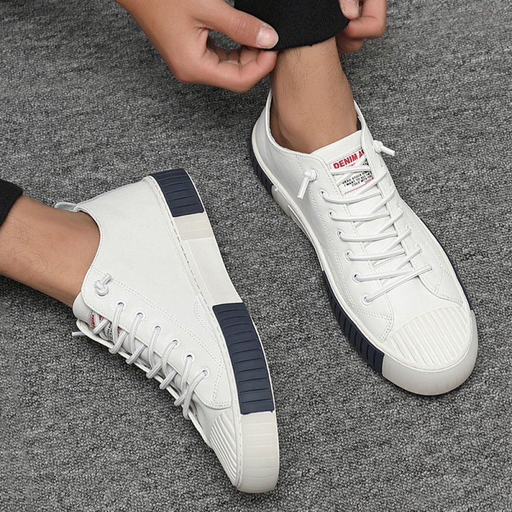 Men's Autumn New Trend Sports Casual Shoes Low-Top Leather Sneakers White