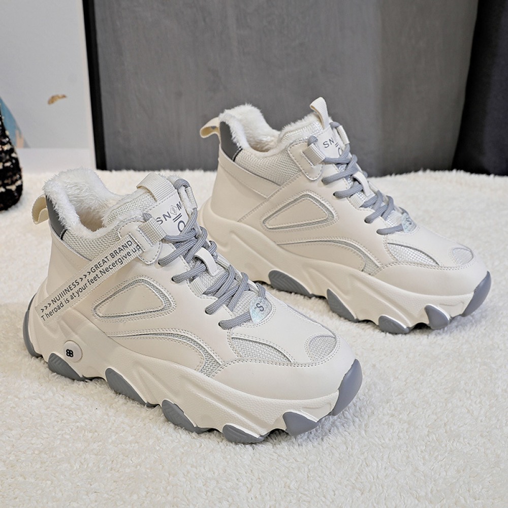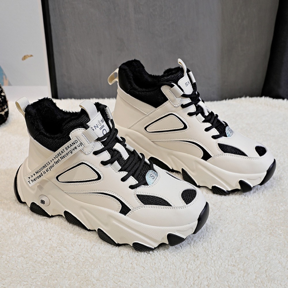 Women's Autumn and Winter Fashion New Warmth Thick-Soled Casual Platform Shoes Plus Velvet
