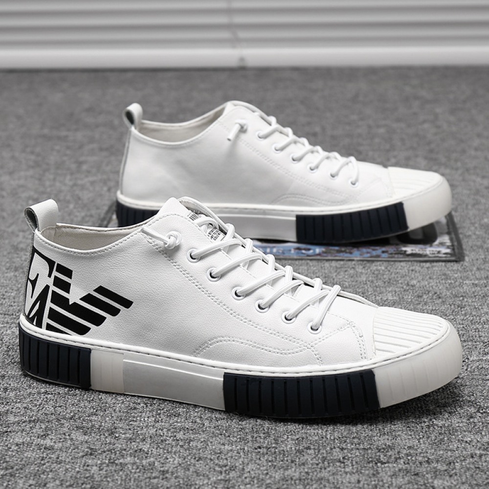 Men's Autumn New Trend Sports Casual Shoes Low-Top Leather Sneakers White