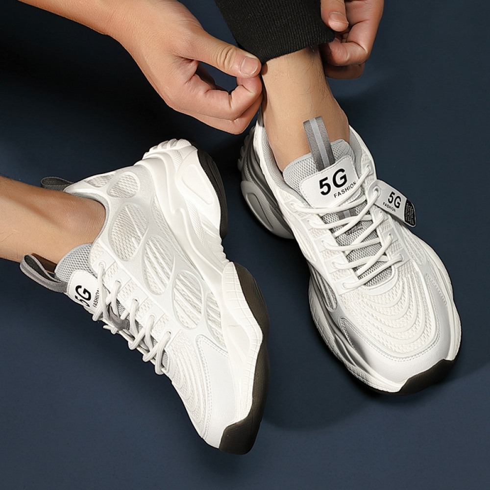 Summer New Trend Men's Mesh Breathable Thick-Soled Increased Sneakers Lace-Up Casual Shoes